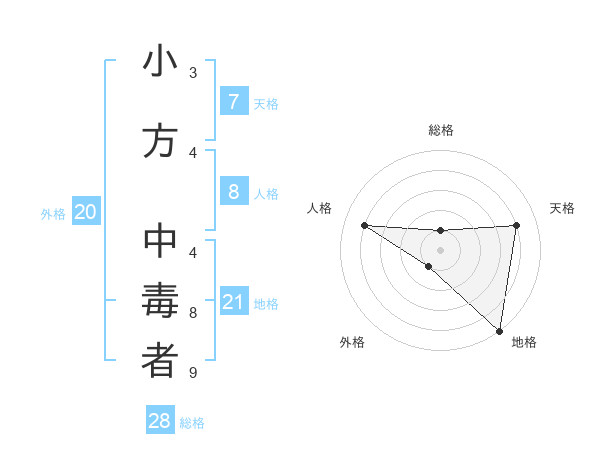 小方 中毒者さんの総格は28画の1点