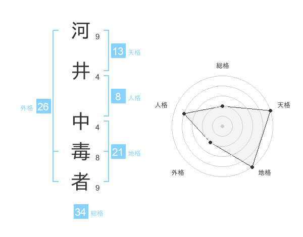 河井 中毒者さんを姓名の画数から五運を鑑定