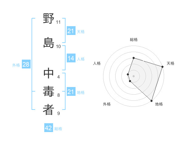 野島 中毒者さんを姓名の画数から五運を鑑定