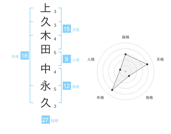 上久木田 中永久さんを姓名の画数から五運を鑑定