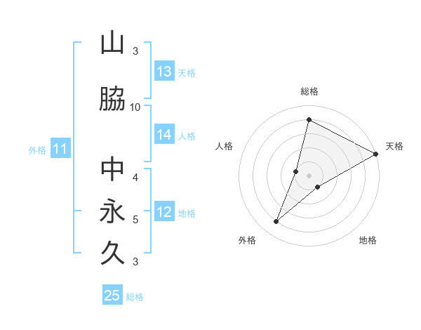 山脇 中永久さんを姓名の画数から五運を鑑定