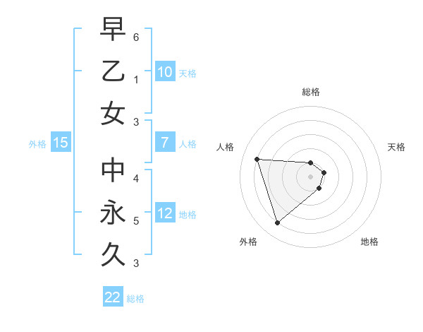 早乙女 中永久さんを姓名の画数から五運を鑑定