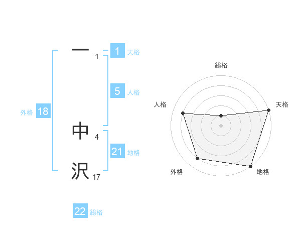 一 中沢さんの地格は21画の5点!