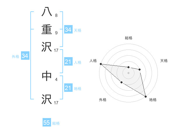 八重沢 中沢さんの総格は55画の1点!