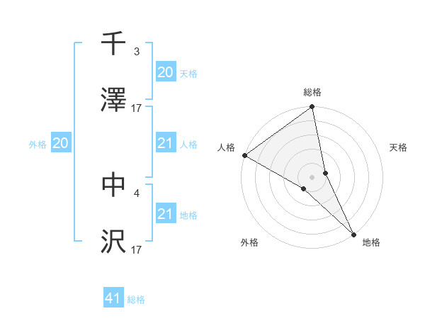 千澤 中沢さんの人格は21画の5点!