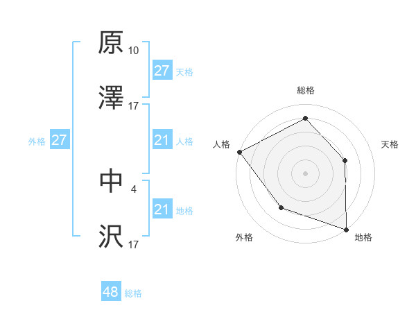 原澤 中沢さんを姓名の画数から五運を鑑定