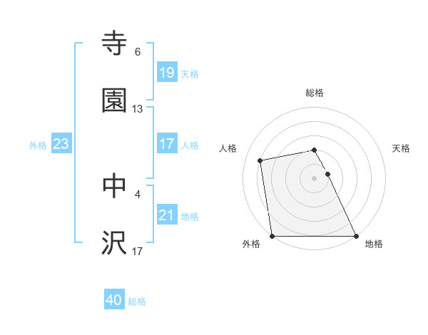寺園 中沢さんの地格は21画の5点!