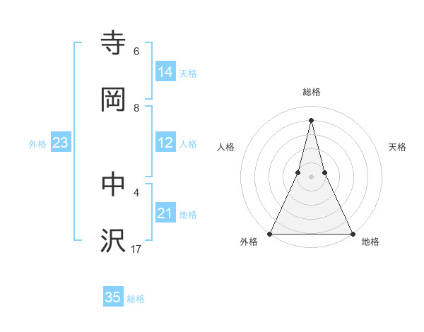 寺岡 中沢さんの総格は35画の4点!