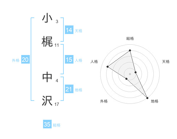 小梶 中沢さんを姓名の画数から五運を鑑定