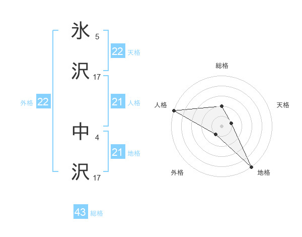 氷沢 中沢さんの人格は21画の5点!