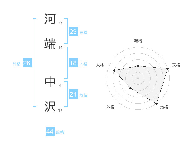 河端 中沢さんの総格は44画の2点!