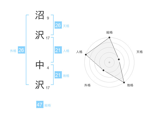 沼沢 中沢さんを姓名の画数から五運を鑑定