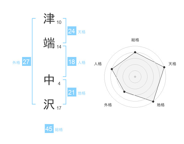 津端 中沢さんの総格は45画の4点!