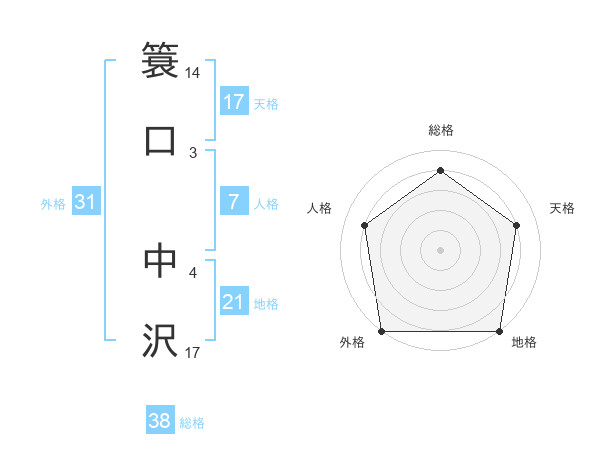 簑口 中沢さんを姓名の画数から五運を鑑定