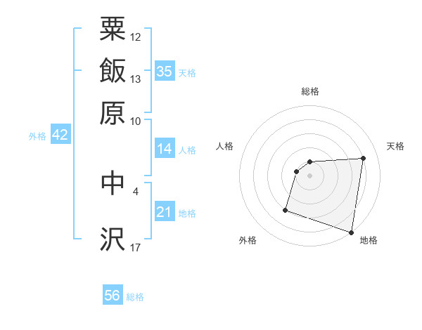 粟飯原 中沢さんを姓名の画数から五運を鑑定