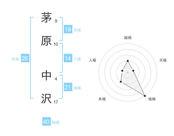 茅原 中沢さんを姓名の画数から五運を鑑定