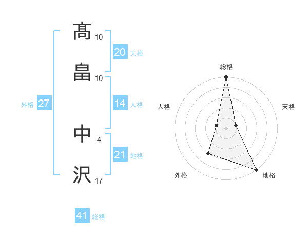 髙畠 中沢さんを姓名の画数から五運を鑑定