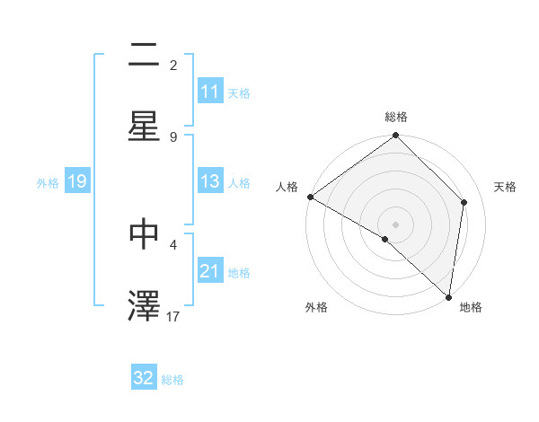 二星 中澤さんの総格は32画の5点!