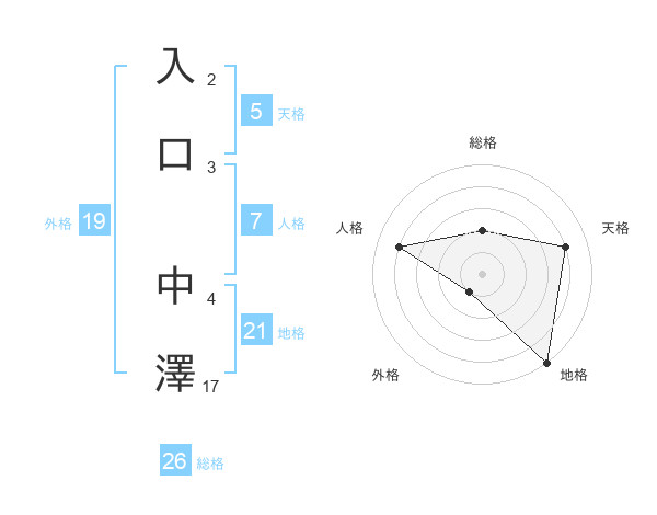 入口 中澤さんの地格は21画の5点!