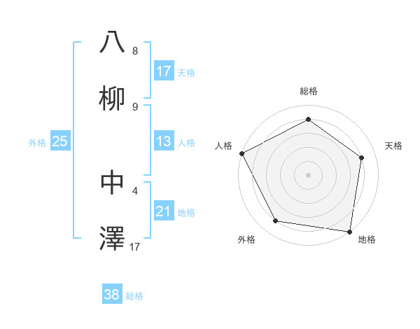八柳 中澤さんを姓名の画数から五運を鑑定