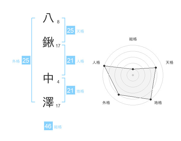 八鍬 中澤さんの人格は21画の5点!