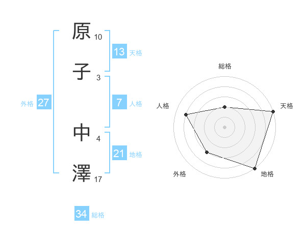 原子 中澤さんの総格は34画の2点!
