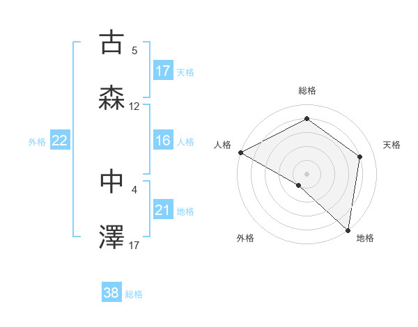 古森 中澤さんの総格は38画の4点!