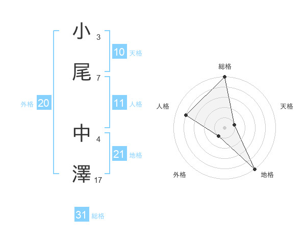 小尾 中澤さんの総格は31画の5点!