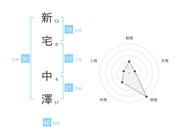 新宅 中澤さんを姓名の画数から五運を鑑定