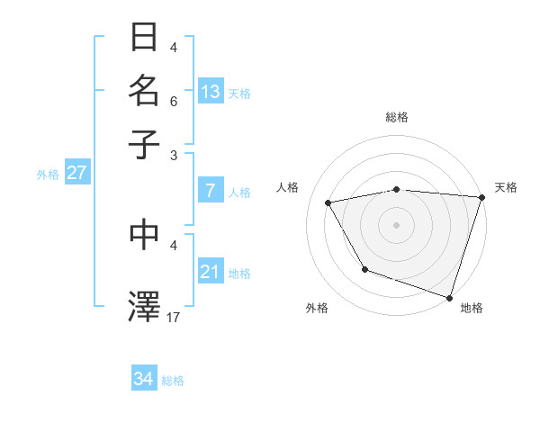 日名子 中澤さんを姓名の画数から五運を鑑定