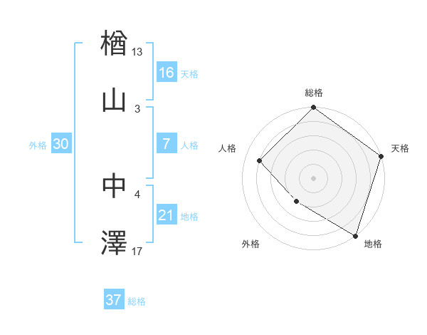 楢山 中澤さんの総格は37画の5点!