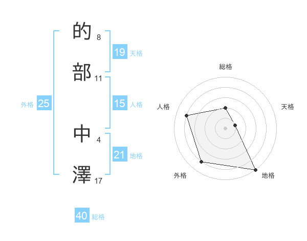 的部 中澤さんの地格は21画の5点!