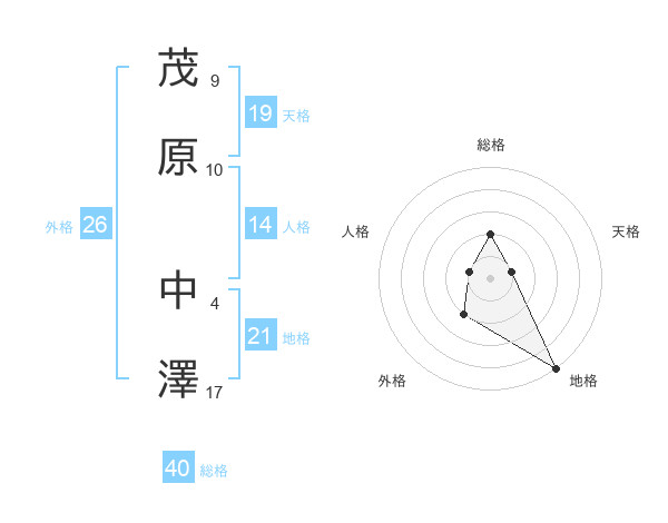 茂原 中澤さんの地格は21画の5点!