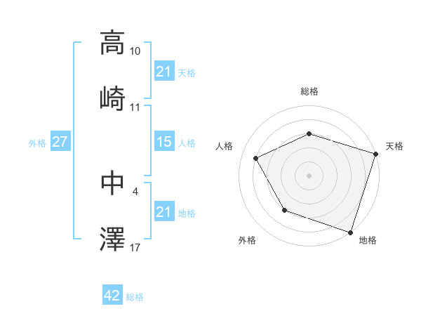 高崎 中澤さんの地格は21画の5点!