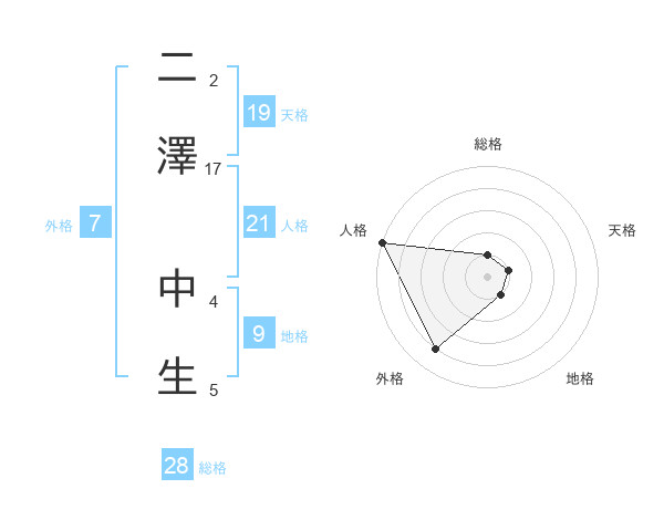 二澤 中生さんの人格は21画の5点!