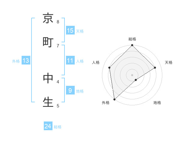 京町 中生さんの総格は24画の5点!