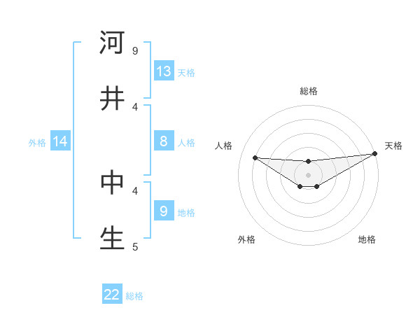 河井 中生さんの総格は22画の1点!