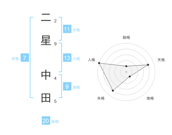 二星 中田さんの総格は20画の1点!