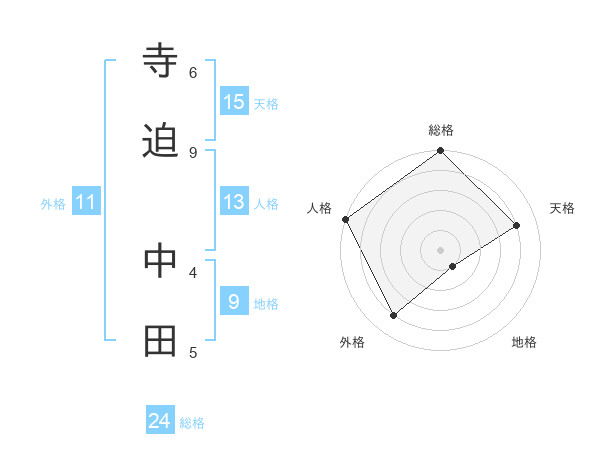 寺迫 中田さんの総格は24画の5点!