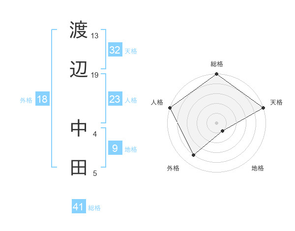 渡辺 中田さんを姓名の画数から五運を鑑定