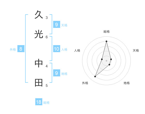 久光 中田さんの総格は18画の4点!