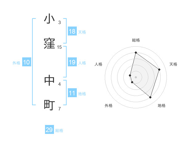 小窪 中町さんの総格は29画の4点!