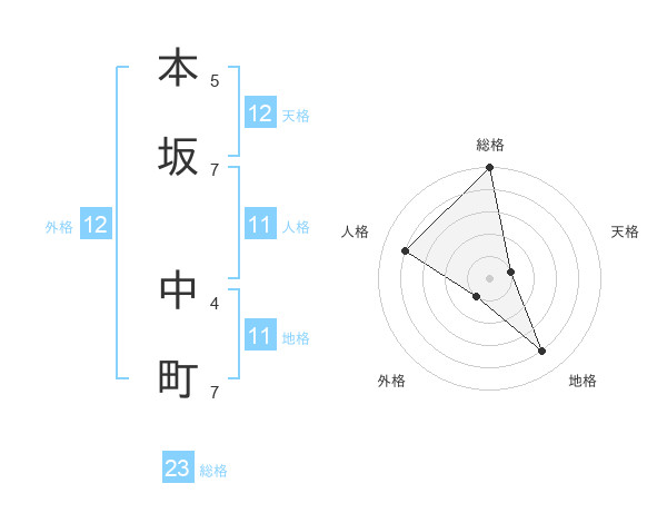 本坂 中町さんの総格は23画の5点!