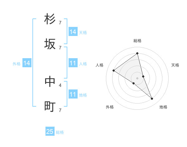 杉坂 中町さんを姓名の画数から五運を鑑定