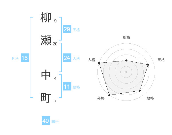 柳瀬 中町さんの総格は40画の2点!