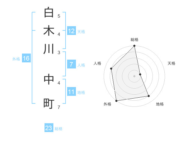 白木川 中町さんの総格は23画の5点!