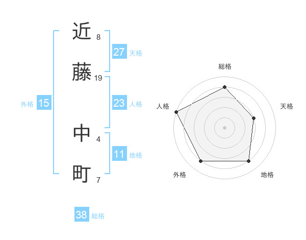 近藤 中町さんの総格は38画の4点!