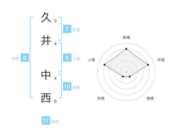 久井 中西さんの総格は17画の4点!