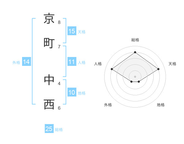 家系が持つ宿命的な運勢を表します。祖先から受け継いだ苗字ですので自分の力が及びません。家柄を象徴します。