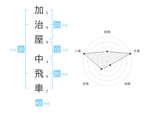 加治屋 中飛車さんを姓名の画数から五運を鑑定